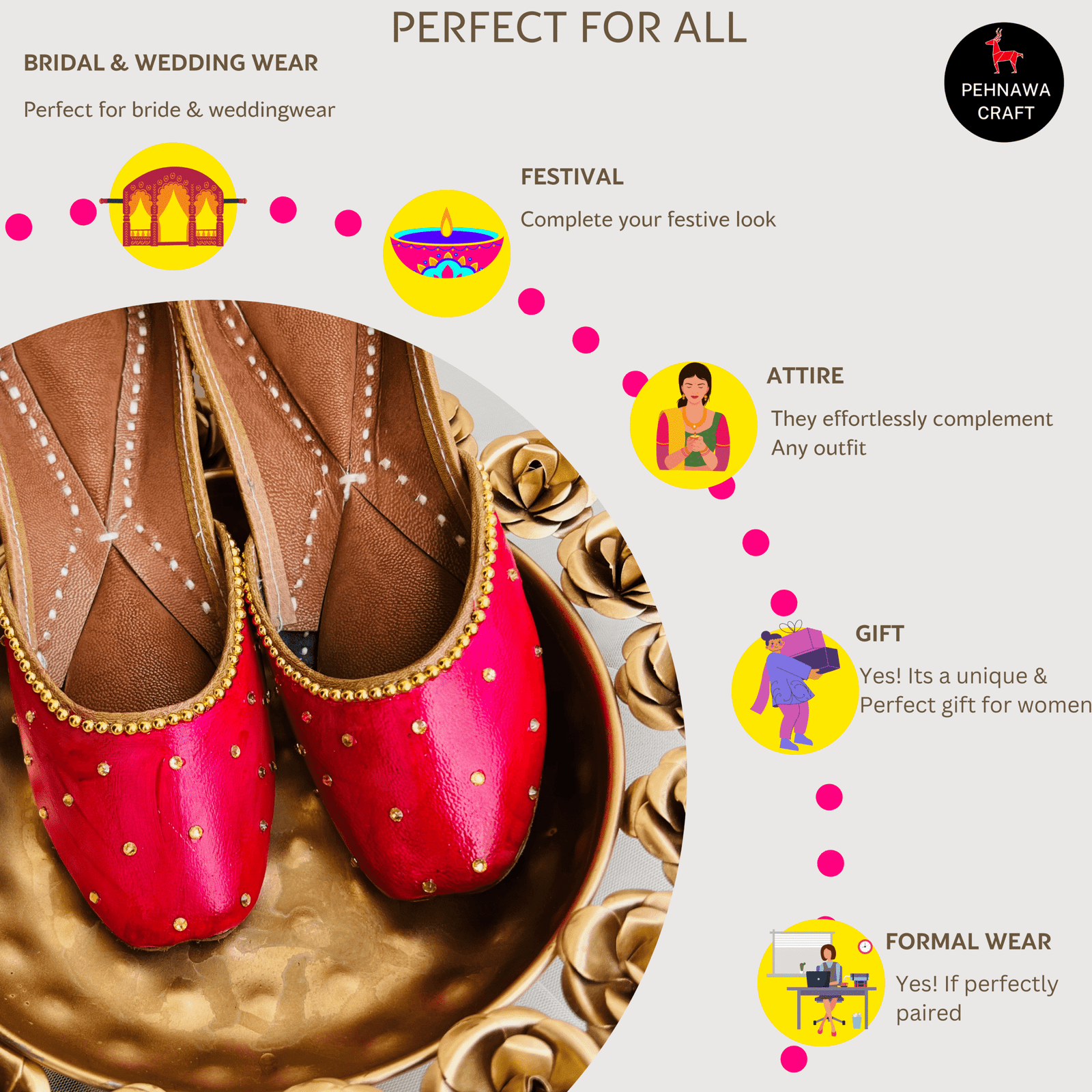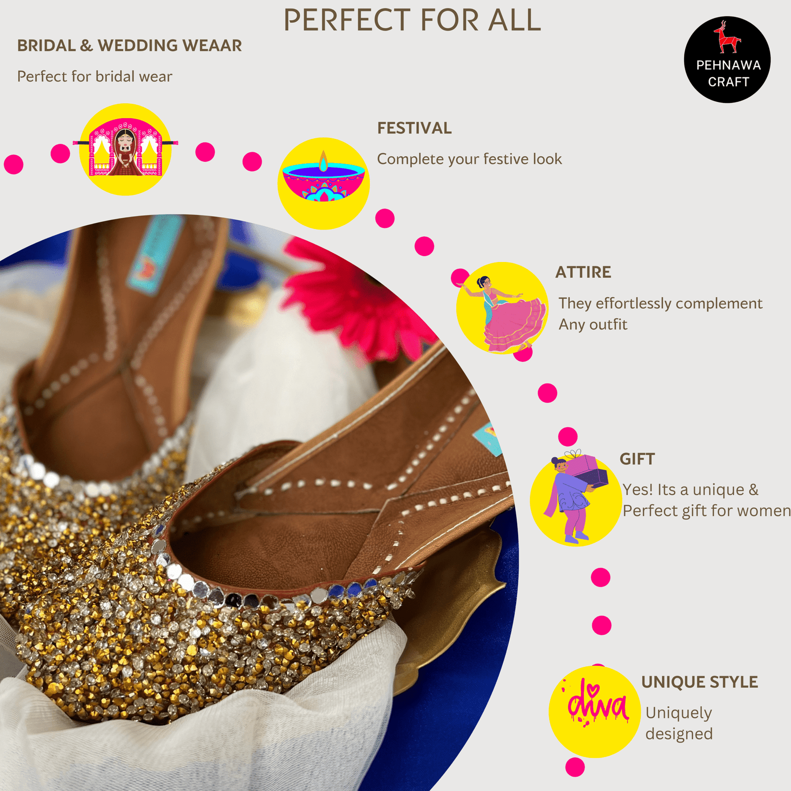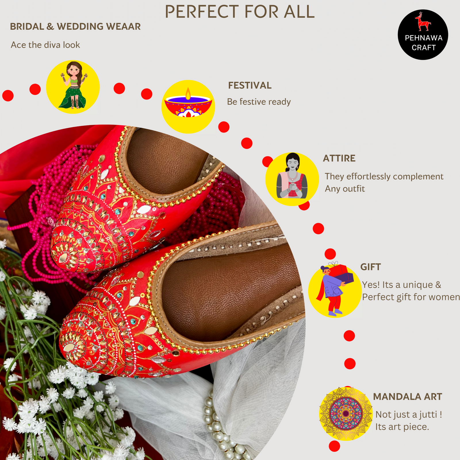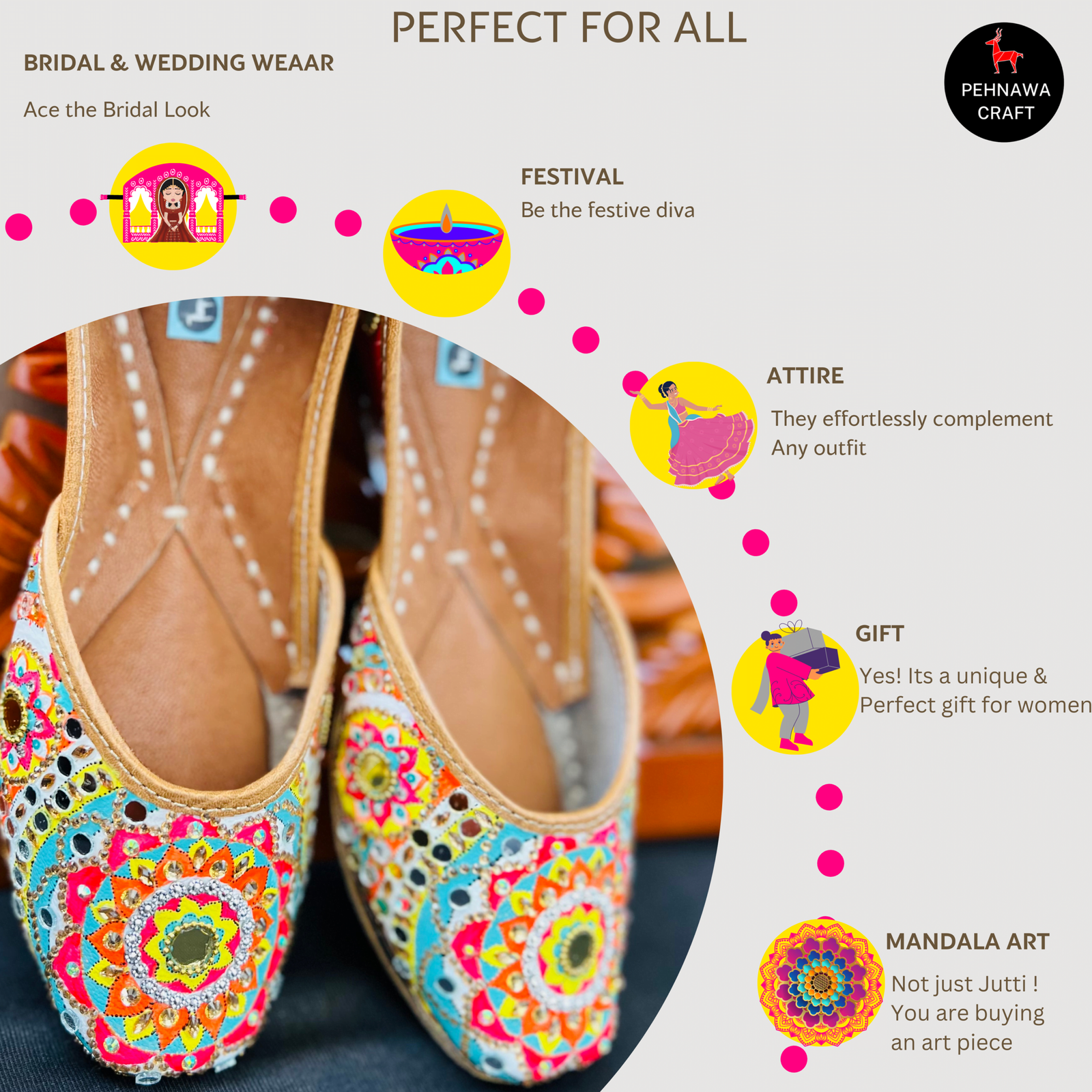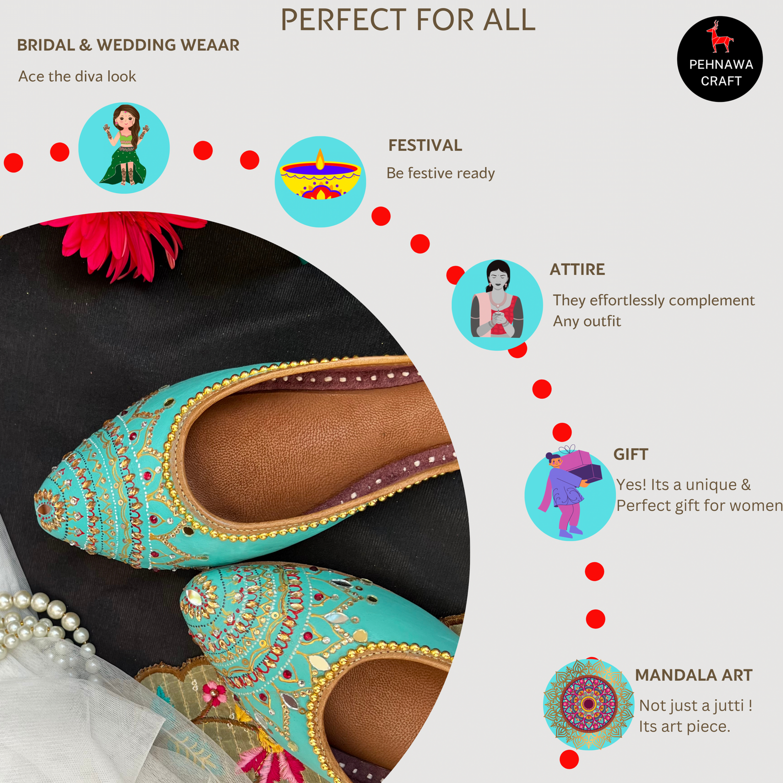 - BITE & PINCH FREE – Experience the ultimate comfort with our PehnawaCraft Embellished Soft Premium Leather Hand painted Juttis