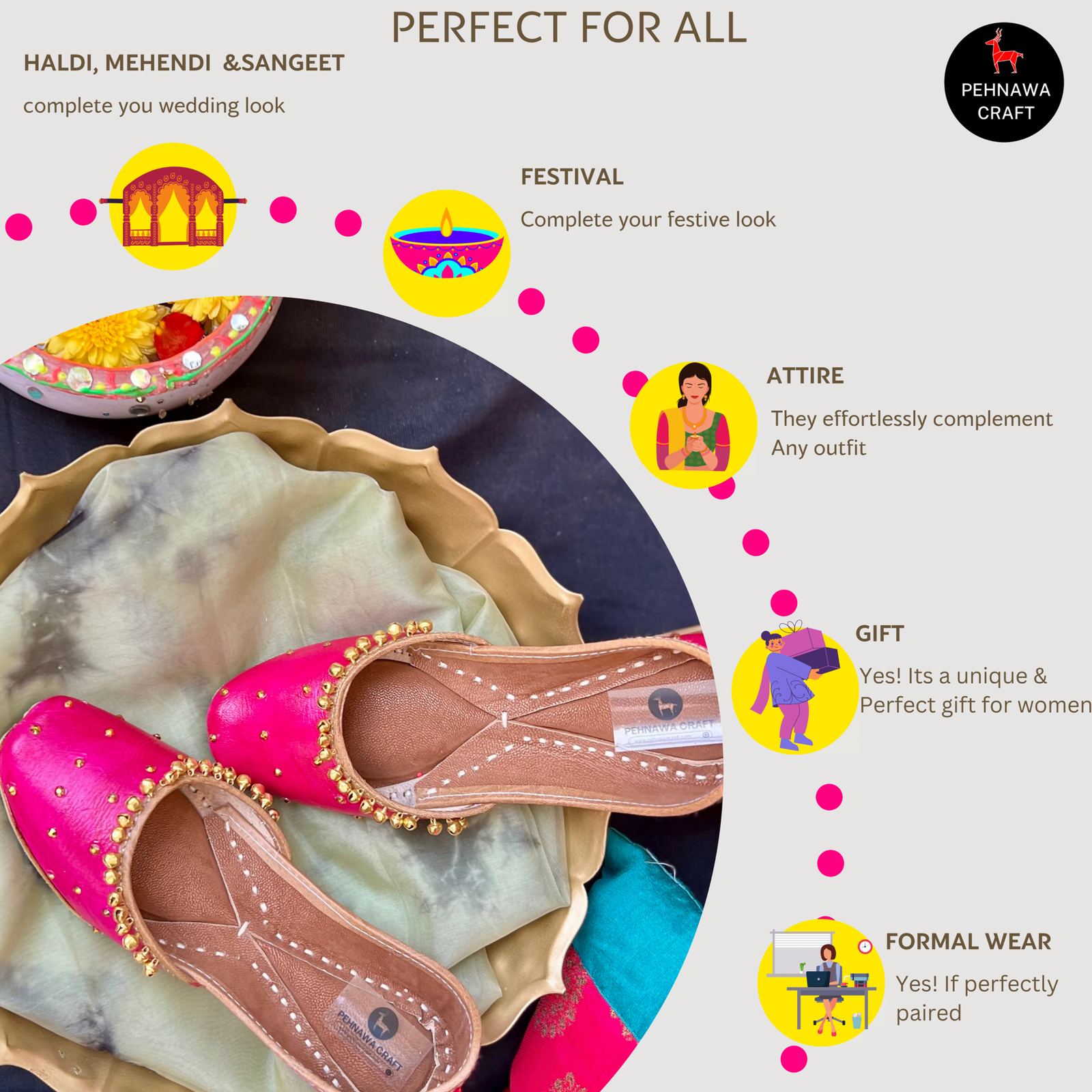 - Since they are all handcrafted slight inconsistencies might be visible sometimes, which makes these juttis unique and adds charm to the product.