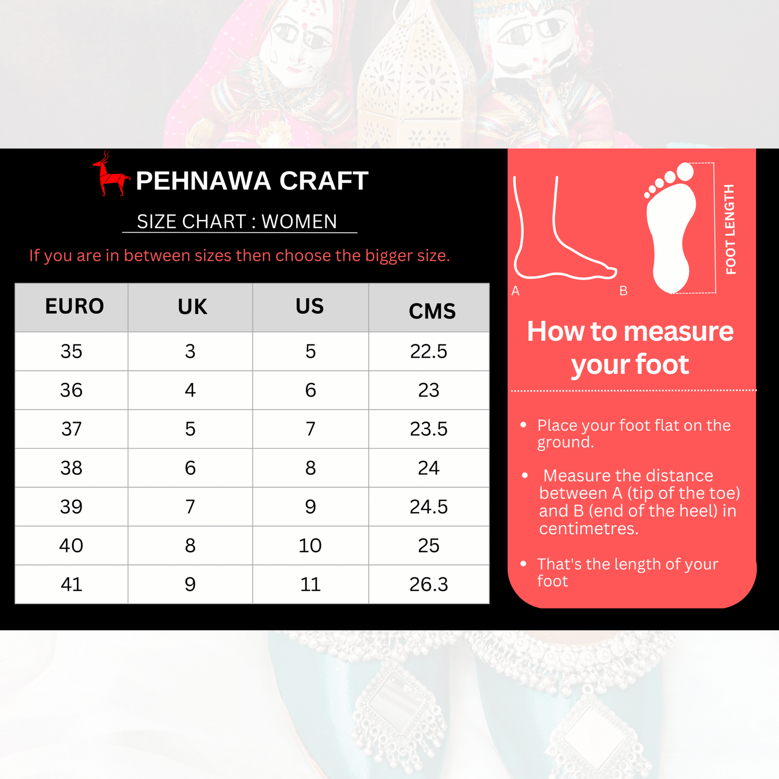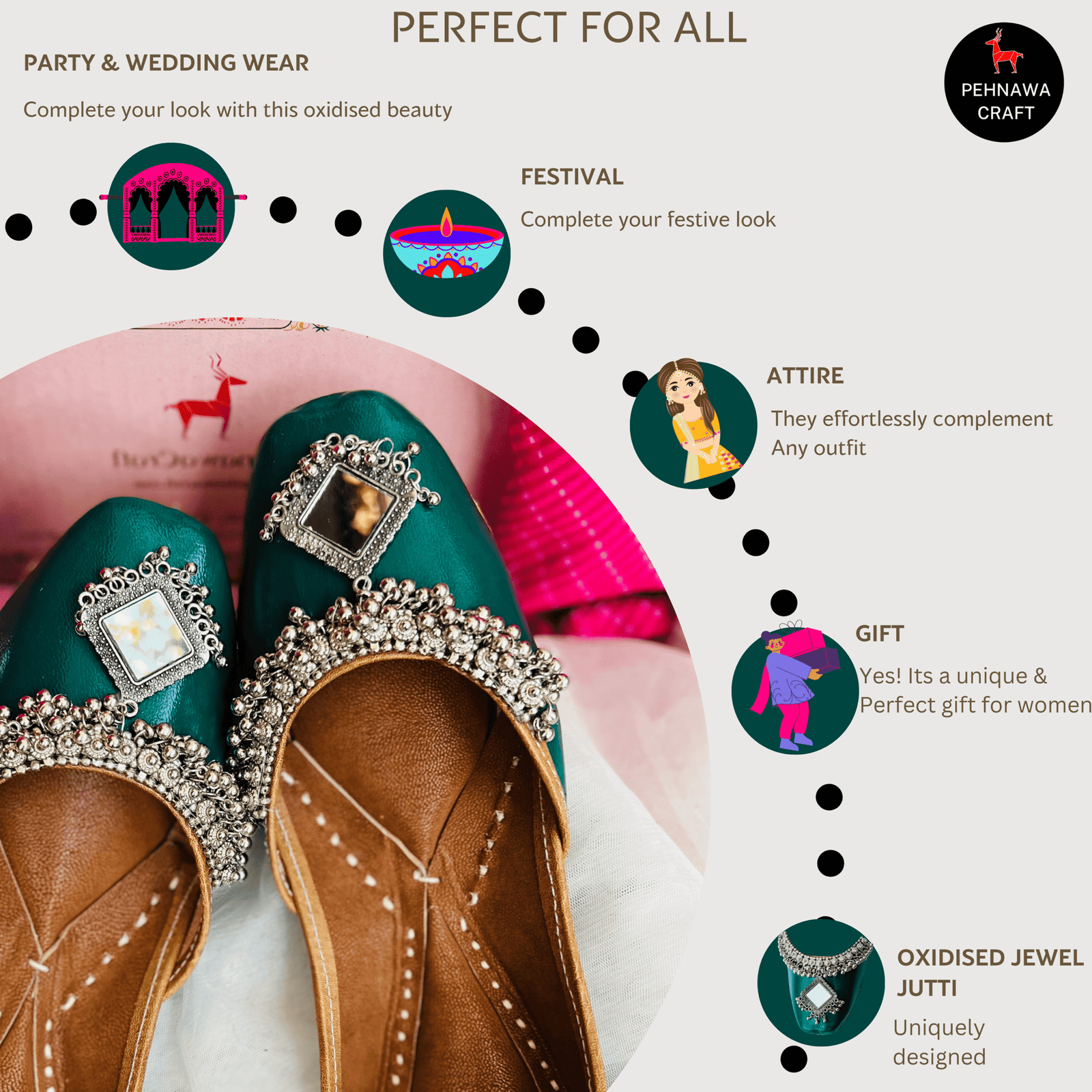 - BITE & PINCH FREE – Experience the ultimate comfort with our PehnawaCraft Embellished Soft Premium Leather Hand painted Juttis