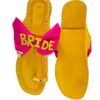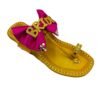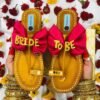 When sandal fails to impress, original kolhapuri come in handy! Well, this stands true, even for the brides as sandals can leave a shoe bite on the most important day of your life, but kolhapuri will always go in without leaving any mark. So here we have handcrafted pair of original kolhapuri with beautiful bride to be motif and bow work. Add this pair to your wardrobe for that perfect bling.