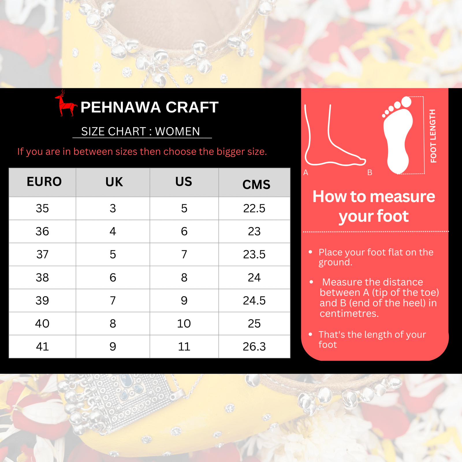 • BITE & PINCH FREE – Experience the ultimate comfort with our PehnawaCraft Embellished Soft Premium Leather Hand painted Juttis